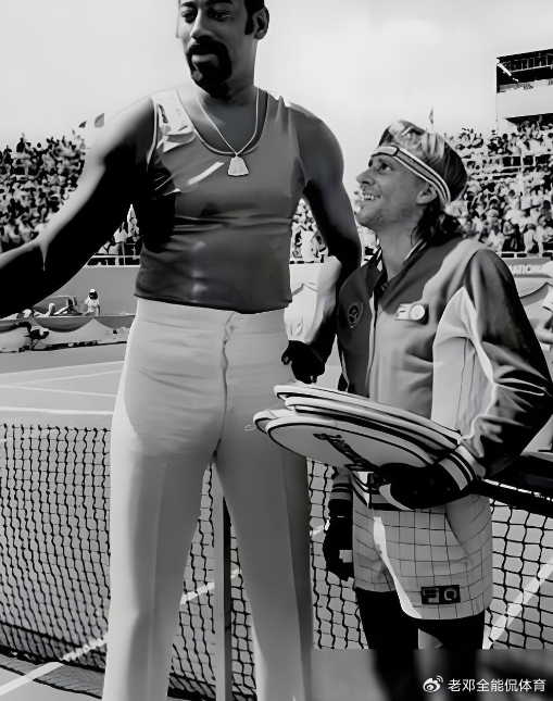 张伯伦在没进NBA之前,他可是全美田径全能战士,不管是跳高,跳远,短跑都达到了当时全美顶级水准。这样的六边形战士,来到NBA自然是降维打击,各种夸张数据被张伯伦拿到手软。他身材比例很好,特别是一双长腿让人印象深刻。这次跟网球运动员比赛结束后合影,我们能看到张伯伦腿都快到对方胸口位置了,目测这双腿保底有1米5长度。