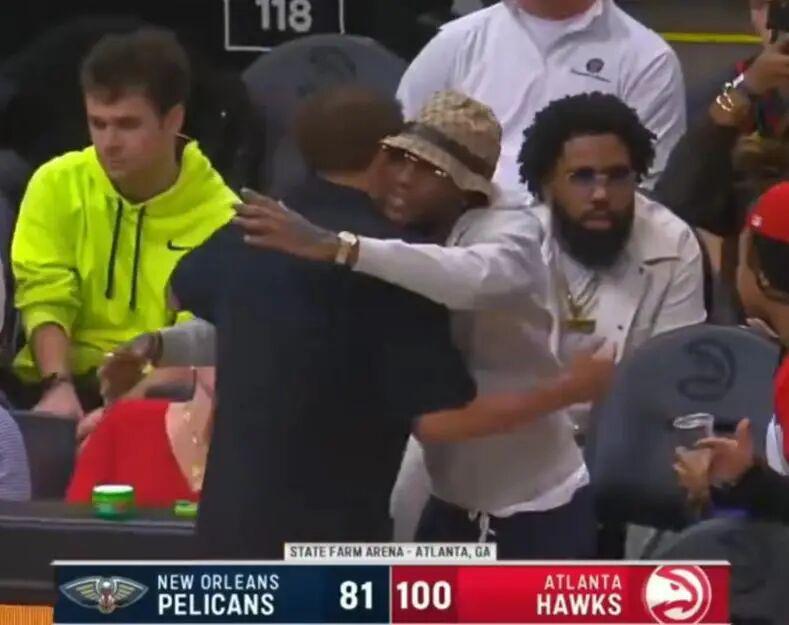 确认消息无误之后,特雷杨又回到场边,挨个和队友、教练、制服组人员拥抱告别。