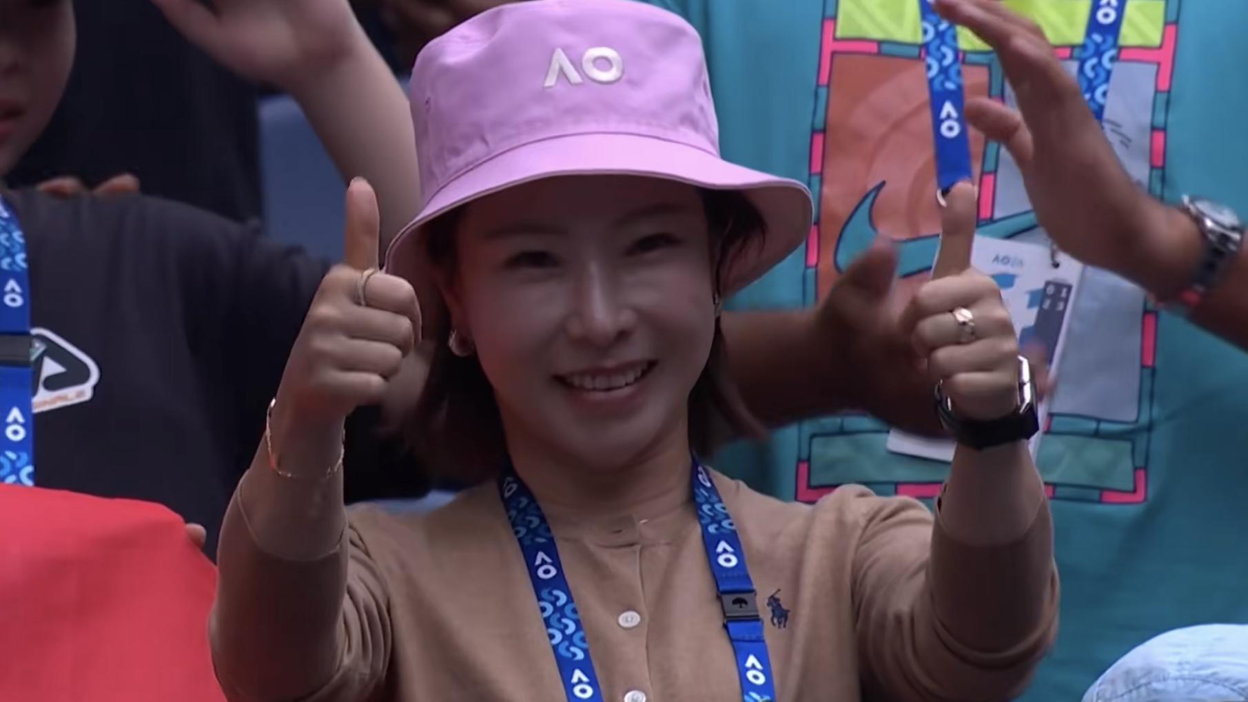张帅夺冠后,观众席上的郑洁