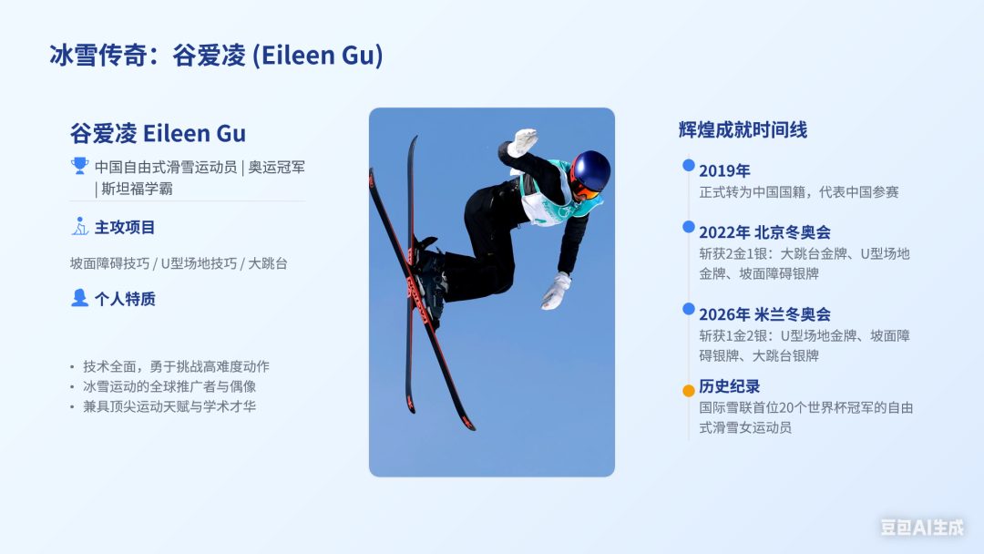 总的来说,结构挺清晰,信息够充分,从个人介绍、滑雪成就、商业价值全包含。