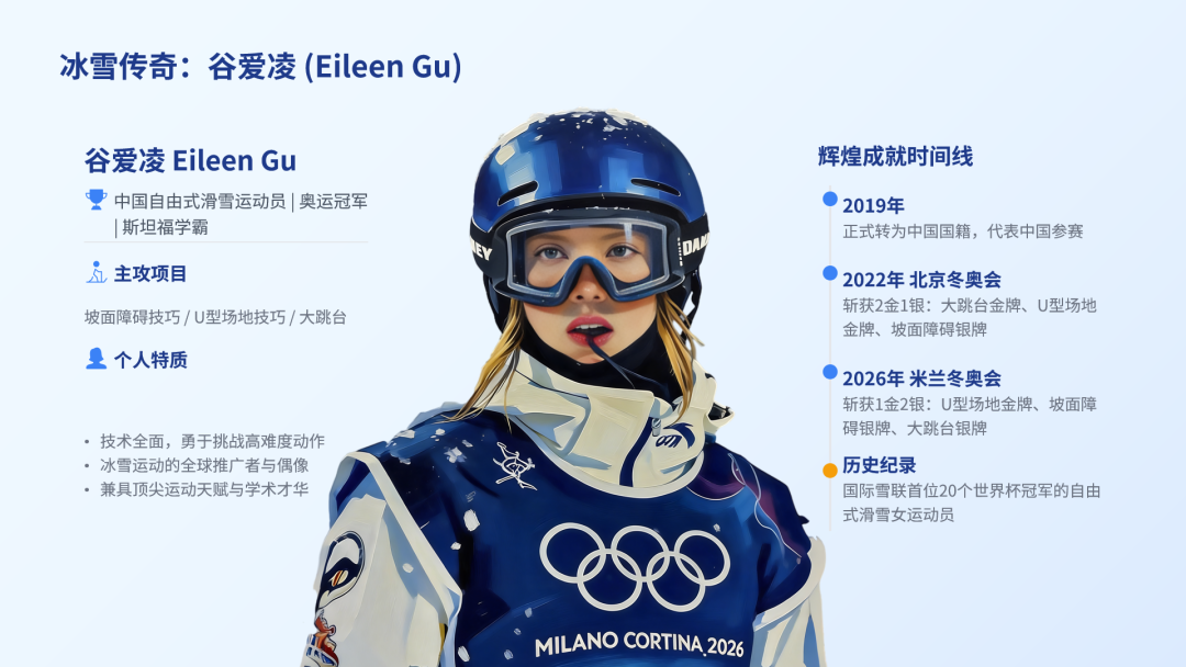 不过无论咋争论,她的实力没人能忽视,今天咱们就为谷爱凌做一份 PPT,顺便学点 PPT 技巧吧~
